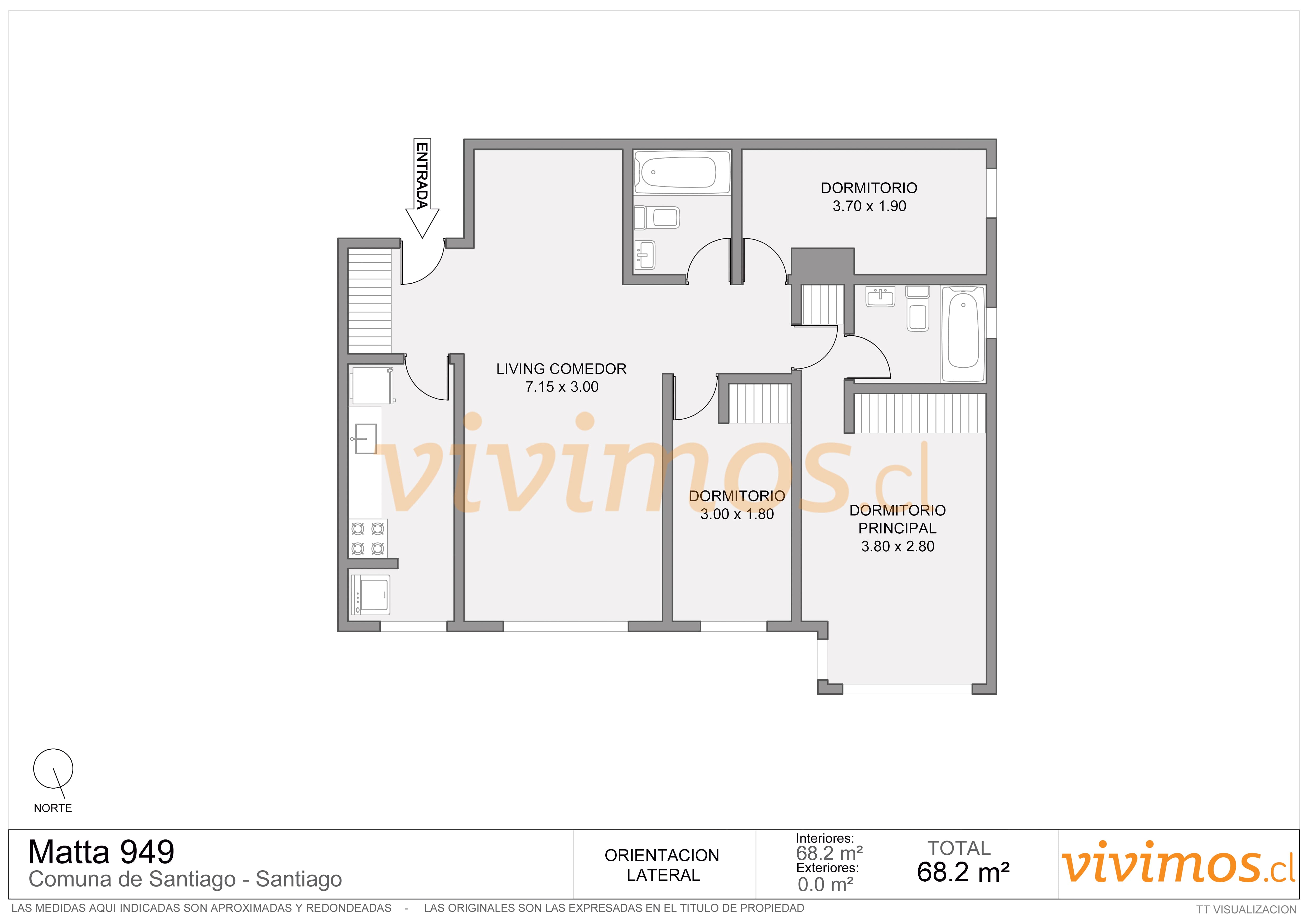 Se vende departamento de 3 dormitorios y 2 baños ubicado en Matta 949 , Santiago centro, cercano a Metro Matta (L3). Colegios, transporte público, Movistar Arena.