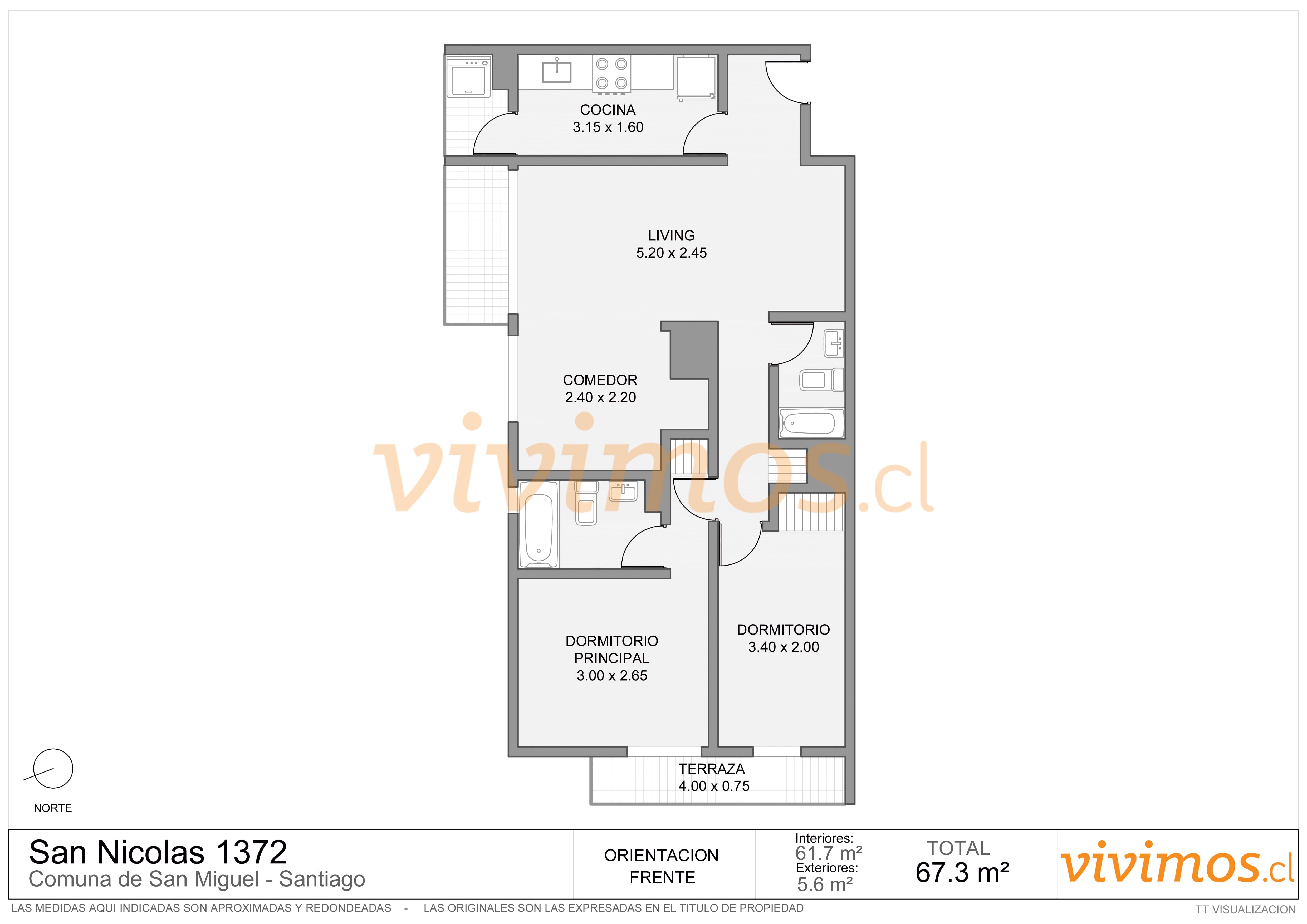 - Superficie total: 61 m2